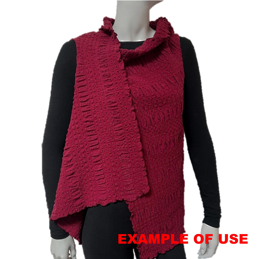 NUNO’s "Continuous Plaid" unstructured sleeveless top drapes effortlessly to turn jeans and a T-shirt into a major fashion event with lightweight warmth, captivating texture and asymmetrical style. Just pull it over your head, slip your arms through the holes, and let it fall beautifully where it may.