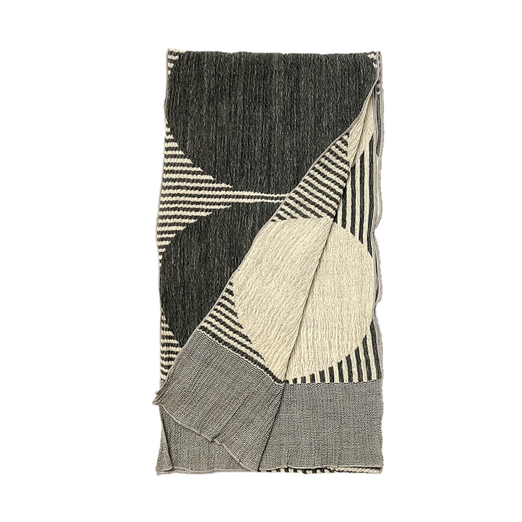 NUNO has created a limited edition of the iconic "Big Rings" scarf in 100% Merino wool to add a subtle elegance to its dramatic design of large circles and thin stripes.